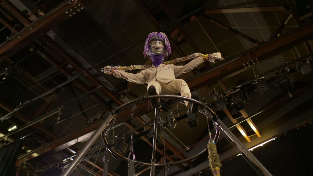 Entrez dans l’univers allégorique de Run Run, personnage suspendu à un portique-carrousel telle une marionnette humaine traversant quelques décennies de mutations politiques et économiques en ravi collectionneur d’objets, témoin et passeur des désastres en cours et des ruines à venir.